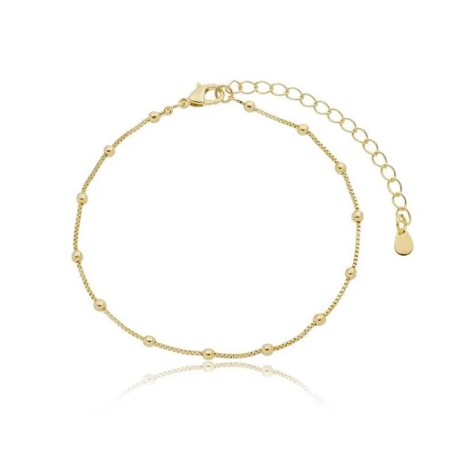 Descubra a elegância sutil da nossa Pulseira Bolinhas Douradas. Esta joia delicada apresenta uma corrente veneziana fina, intercalada com charmosas bolinhas polidas que refletem a luz com um brilho encantador. Com um acabamento impecável em banho de ouro 18k, ela é perfeita para adicionar um toque de sofisticação ao seu dia a dia ou para complementar um look mais elaborado. Versátil e atemporal, pode ser usada sozinha para um estilo minimalista ou em um mix de pulseiras para um visual moderno. Um acessório indispensável para quem busca beleza e versatilidade.