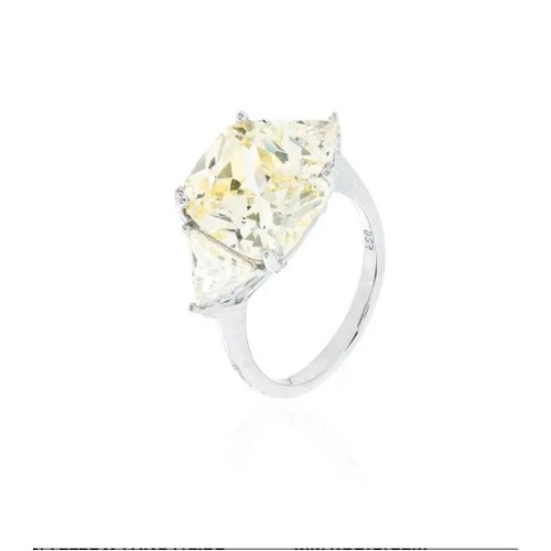 Anel Três Pedras Zircônia Amarela Lapidada Prata 925