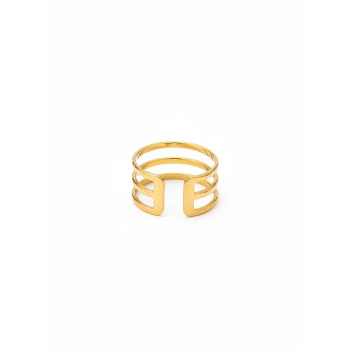 Anel Dourado Geométrico Aberto Três Bandas