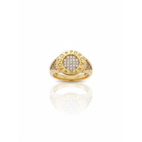Anel Foco Força Fé Dourado Cravejado