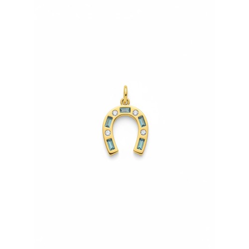 Pingente Ferradura da Sorte com Zircônias Azuis e Brancas Banhado a Ouro 18k